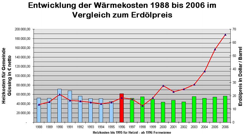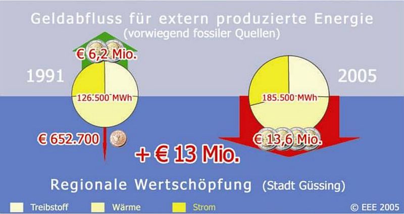 Am Beispiel der Stadt Güssing zeigt sich die regionale Wertschöpfung und die Abkopplung an der Preissteigerung für Wärme: